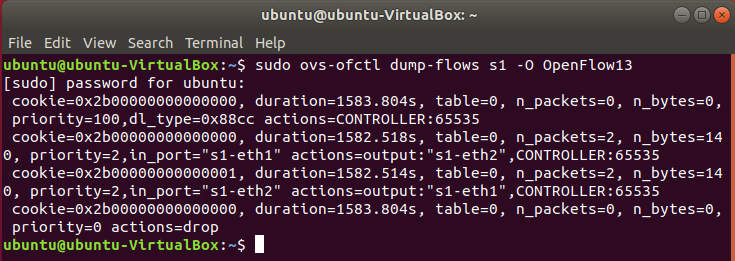 用 OVS 命令查看交换机中确实存在相应版本的流表,cookie、priority 等信息可以上面的抓包能够对应上。