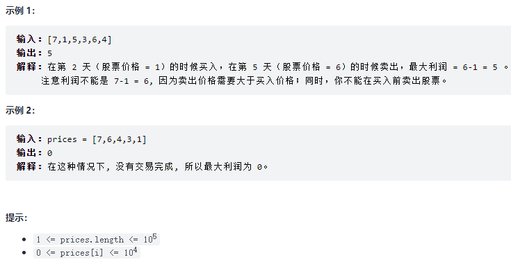 链接:https://leetcode-cn.com/problems/best-time-to-buy-and-sell-stock
