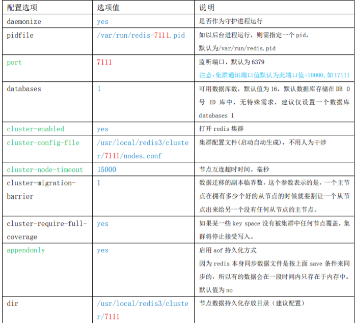# cp /usr/local/src/redis-3.0.3/redis.conf /usr/local/redis3/cluster/7111/redis-7111.conf