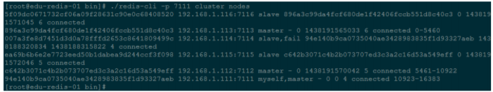 [root@edu-redis-01 bin]# ./redis-cli -p 7111 cluster nodes