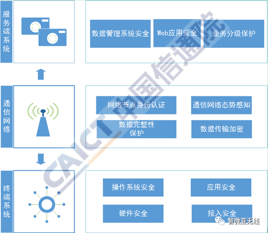 基于模型分析可知,物联网安全风险主要也集中在服务端、终端、通信网络三个方面。