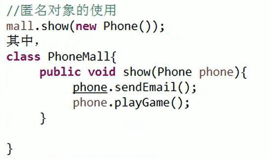 此时,匿名对象new phone赋值给了形参phone,在show方法内可以多次调用