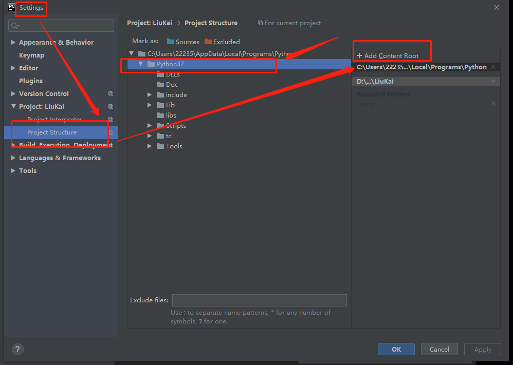 3.设置项目结构,添加python37文件夹(对应版本)