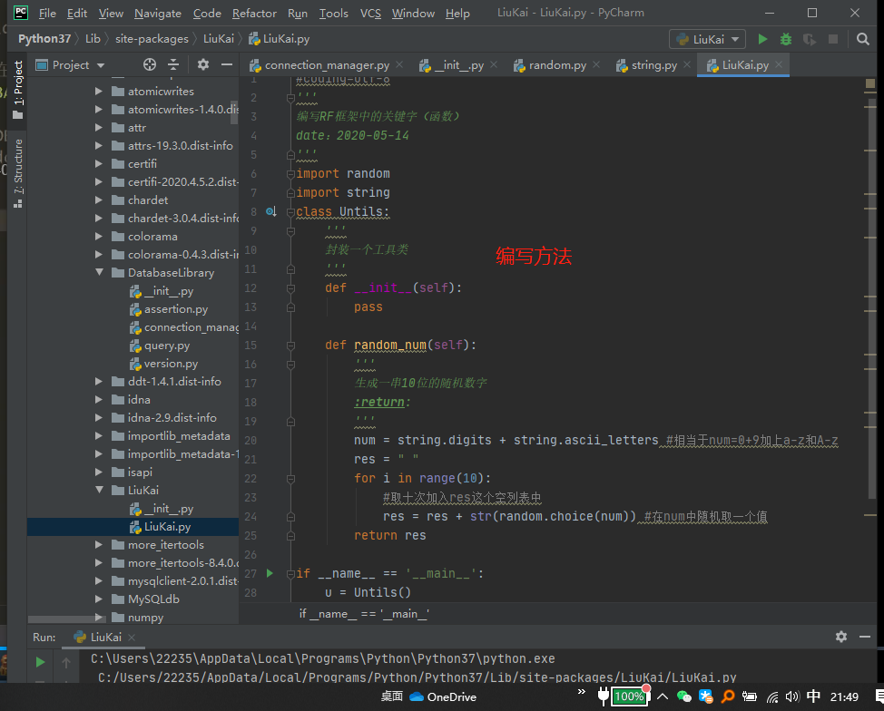 6.在这个库中新建py文件编写需要的方法。