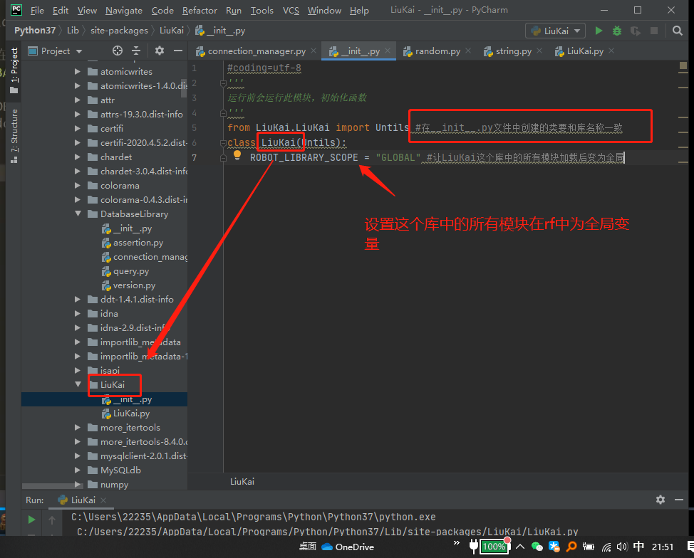 7.编辑__init__.py文件,使导入的库每次运行前都初始化,并设置全局变量。
