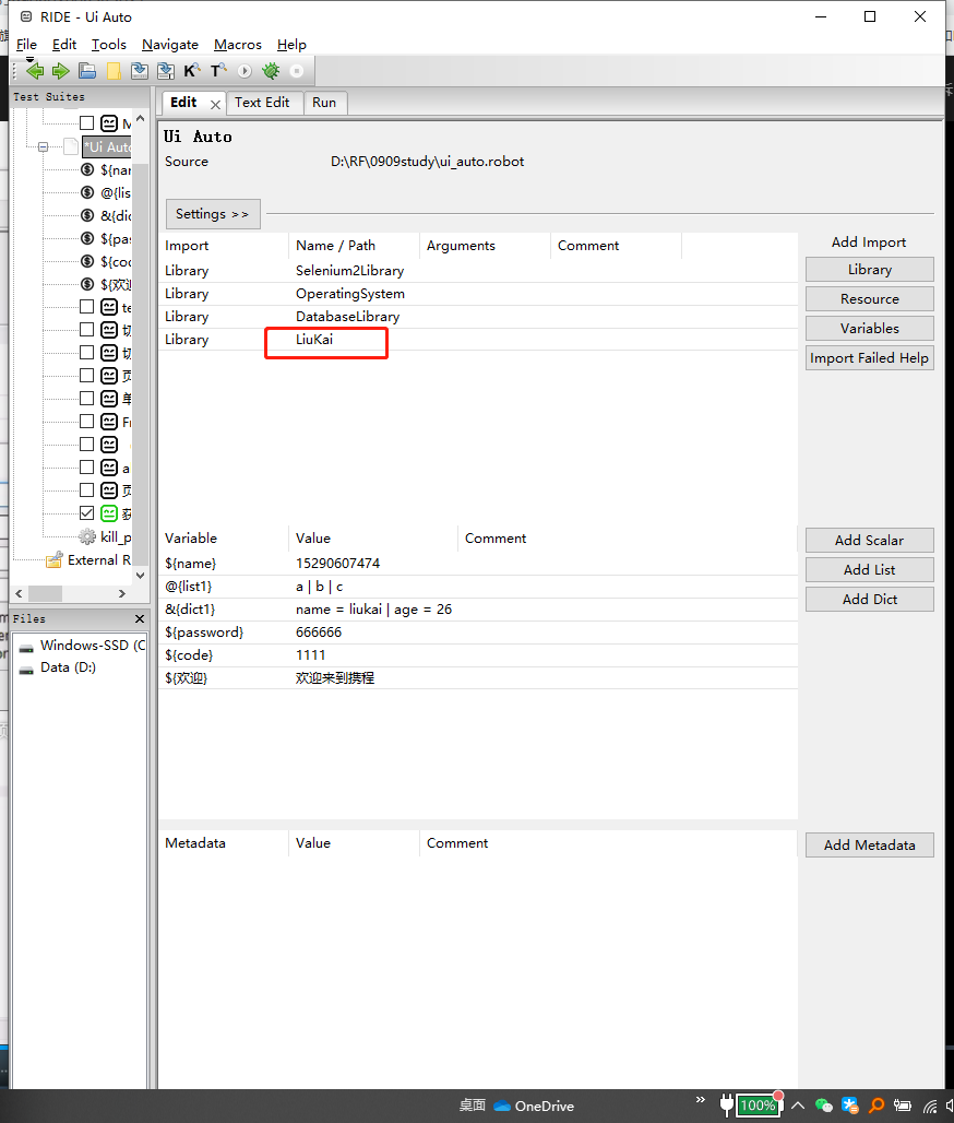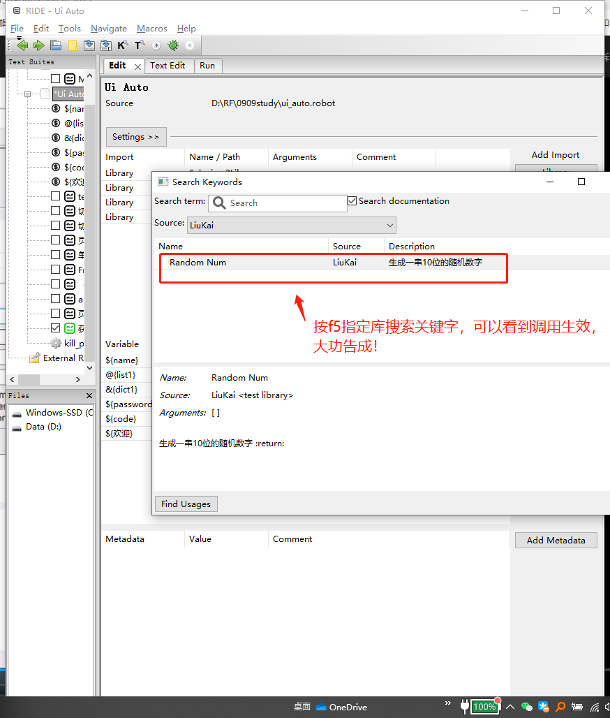 8.在rf中导入库并使用关键字。