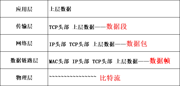 数据单元在每层都不一样,在传输层为数据段、网络层为数据包、数据链路层为数据帧、物理层为比特流