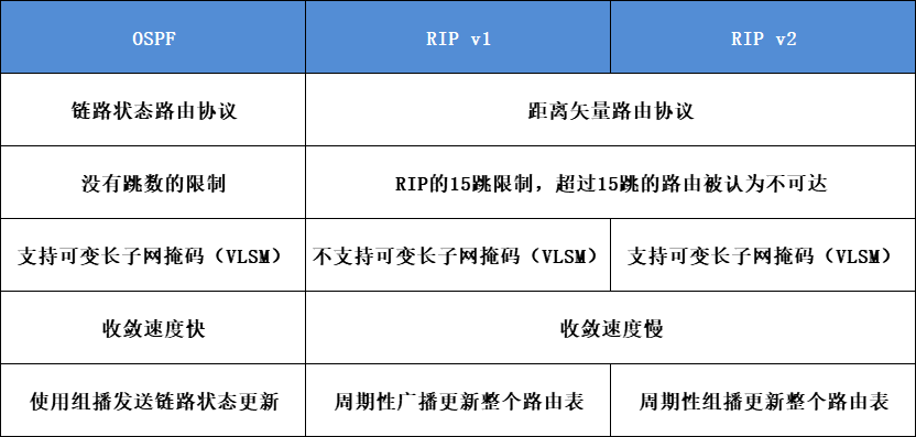 可适应大规模网络、路由变化收敛速度快、无路由环、支持变长子网掩码VLSM、支持区域划分、支持以组播地址发送协议报