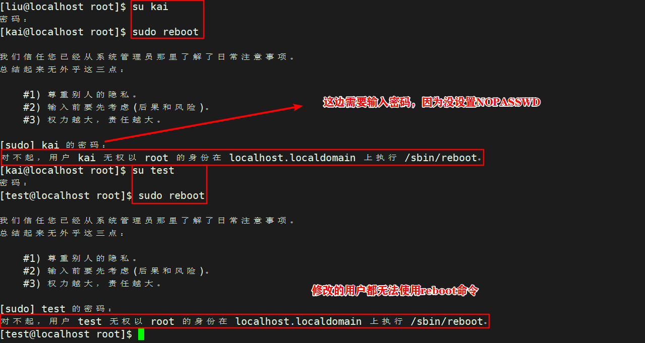 实验:将test用户加入到wheel组中,开启su文件中第六行,试验其他用户能不能用su命令