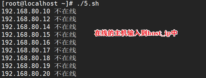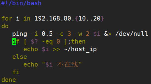 - 例题五:检测指定范围主机是否通信,并将通信的主机ip输出到文件host_ip中