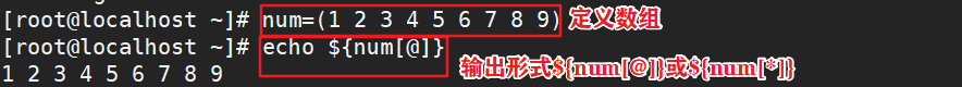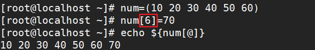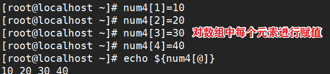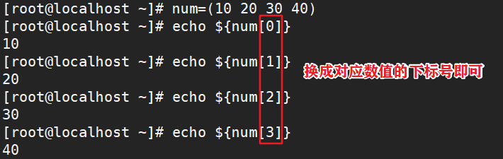 数组名=(元素1 元素2 元素3......),使用括号包含数组中的元素,每个元素都有各自的下标(从0开始)
