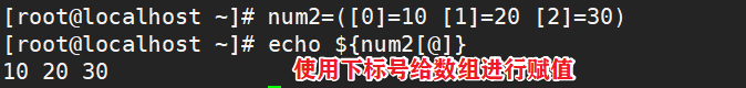 方式二:数组名=([0]=value [1]=value [2]=value)