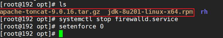 1.5.1、关闭防火墙,将安装Tomcat所需要软件包传到/opt目录下