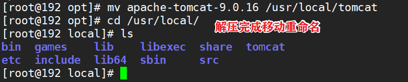 mv apache-tomcat-9.0.16 /usr/local/tomcat