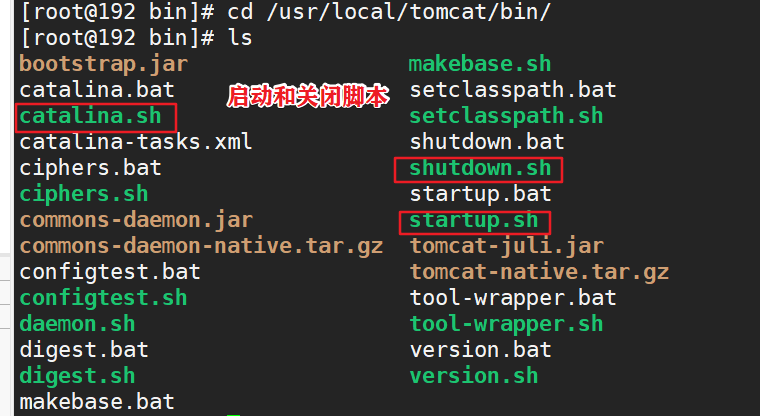 | bin | 存放启动和关闭 Tomcat 的脚本文件,比较常用的是 catalina.sh、startup.sh、shutdown.sh三个文件 |