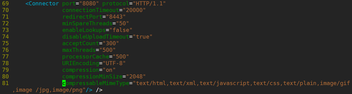 | compressableMimeType | 压缩类型,指定对哪些类型的文件进行数据压缩 |