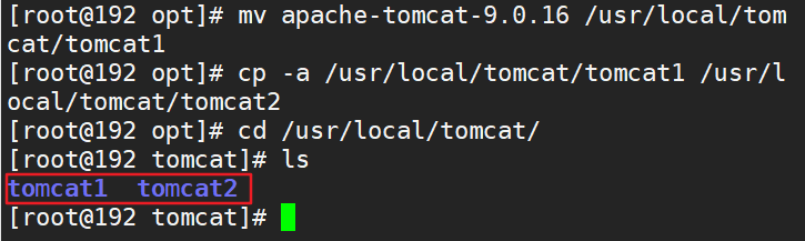 mv apache-tomcat-9.0.16 /usr/local/tomcat/tomcat1