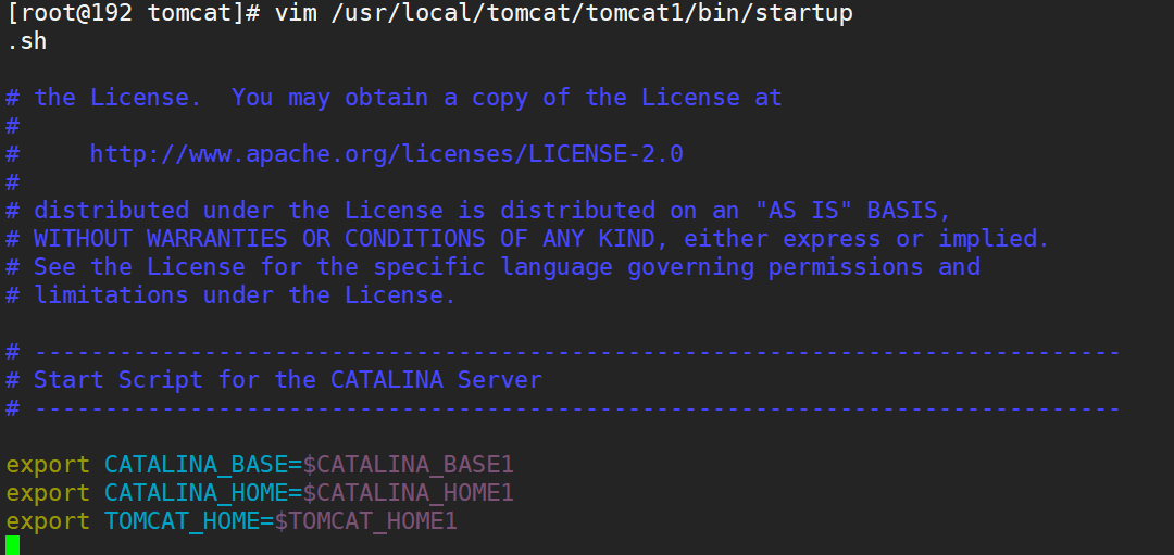 vim /usr/local/tomcat/tomcat1/bin/startup.sh