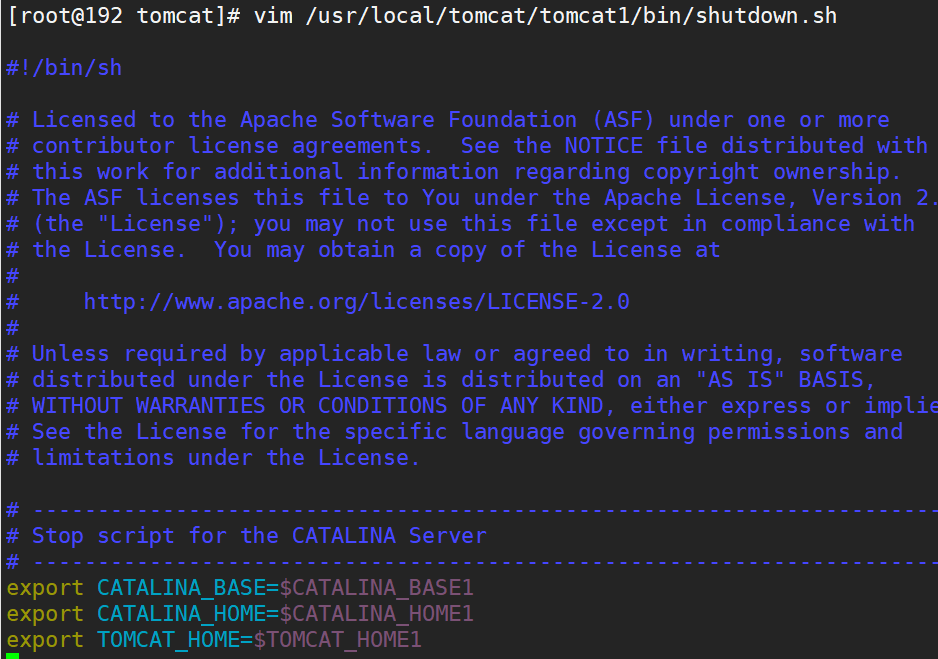 vim /usr/local/tomcat/tomcat1/bin/shutdown.sh