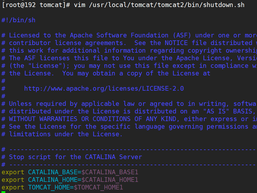 vim /usr/local/tomcat/tomcat2/bin/shutdown.sh