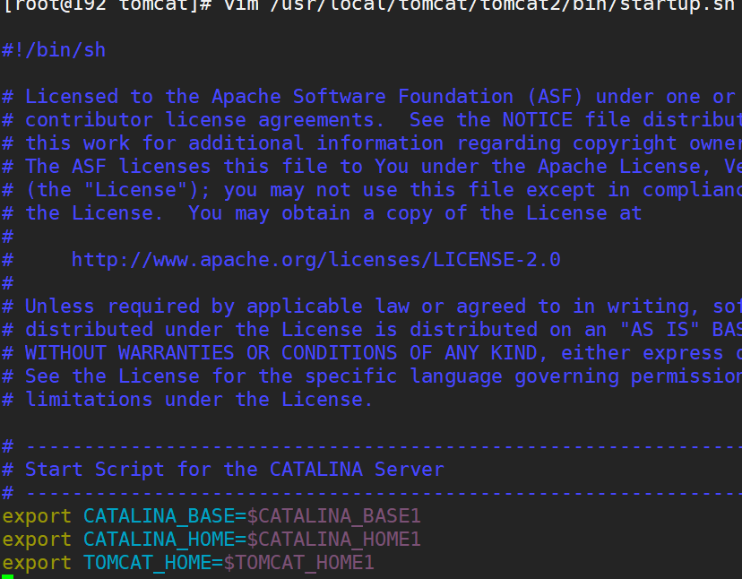 vim /usr/local/tomcat/tomcat2/bin/startup.sh