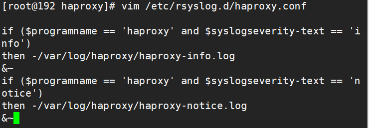 要修改rsyslog配置,为了便于管理。将haproxy相关的配置独立定义到haproxy.conf,并放到/etc/rsyslog.d/下,rsyslog启动时会自动加载此目录下的所有配置文件