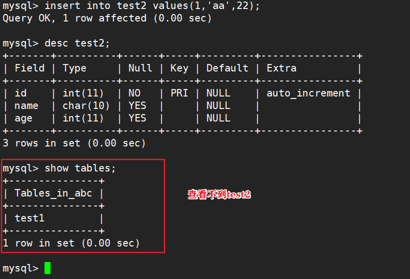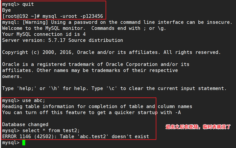 临时表创建成功之后,使用show tables命令是看不到创建的临时表的,临时表会在连接退出后被销毁