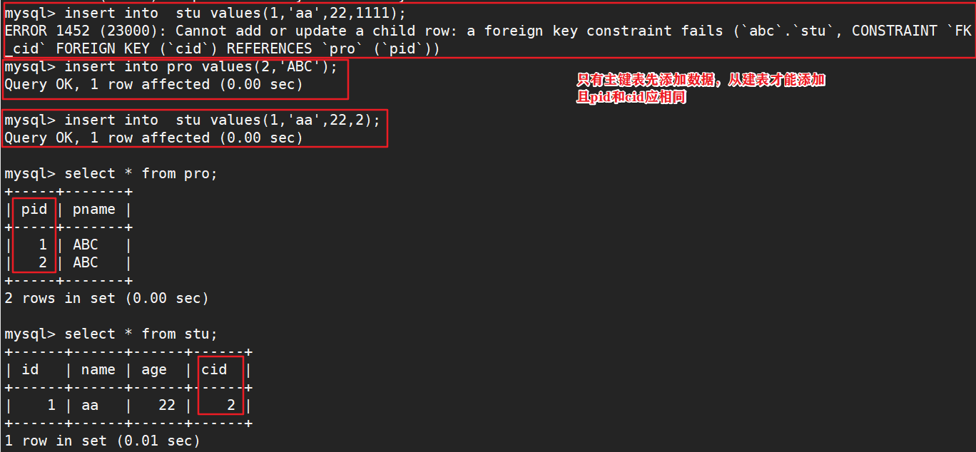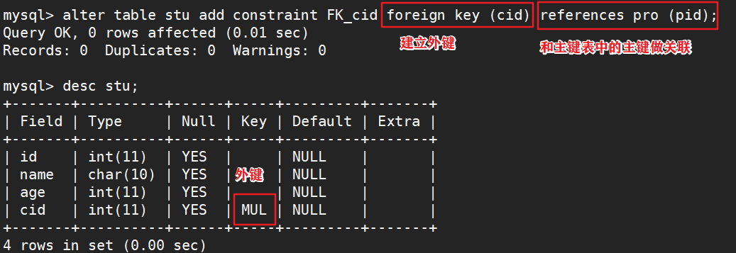 alter table stu add constraint FK_cid foreign key (cid) references pro (pid);