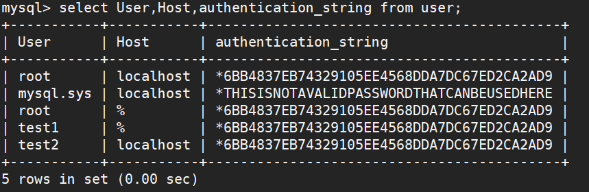#密码:若使用明文密码,直接输入'密码',插入到数据库时由mysql自动加密;