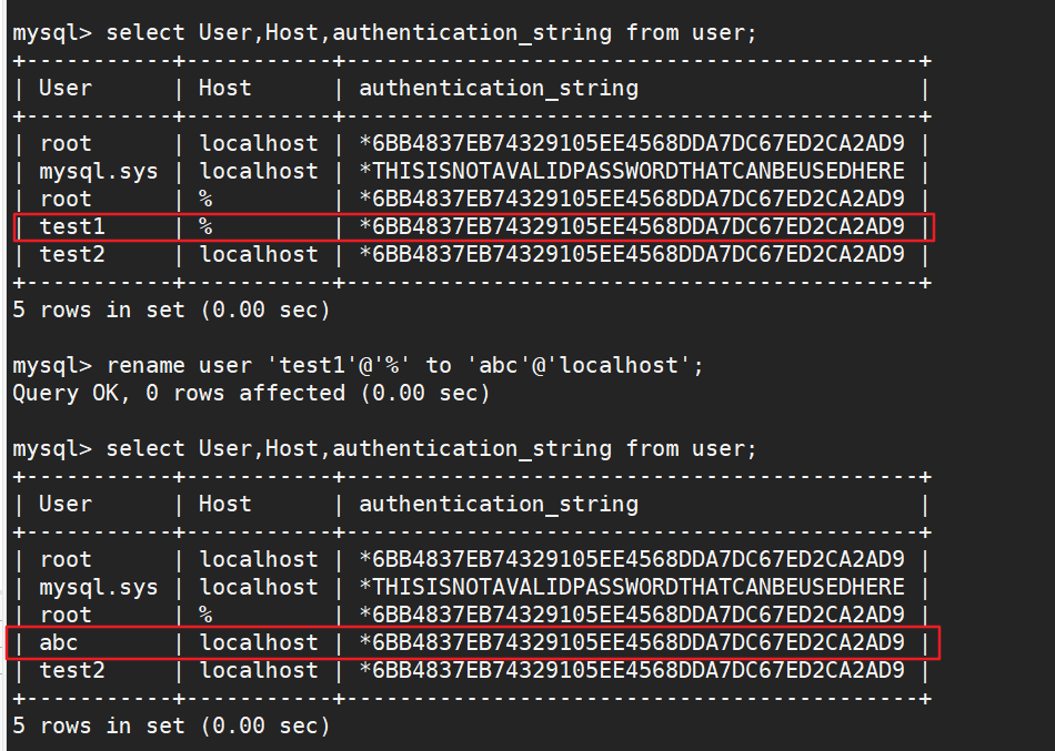 rename user '旧用户名'@'localhost' to '新用户名'@'localhost';