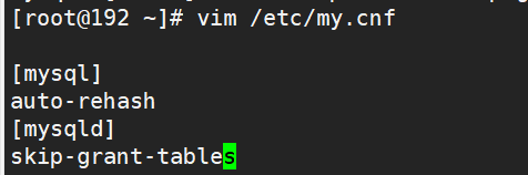 skip-grant-tables #添加,使登录mysql不使用授权表