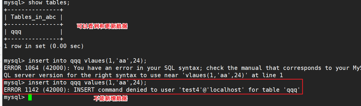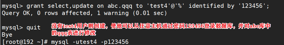 grant语句:专门用来设置数据库用户的访问权限。当指定的用户名不存在时,grant语句将会创建新的新的用户;当指定的用户名存在时,grant语句用于修改用户信息