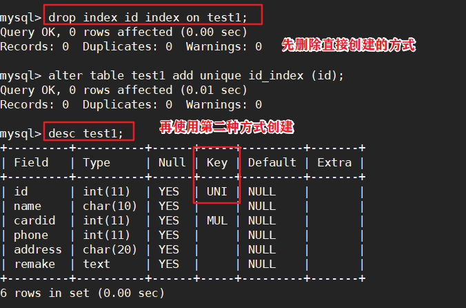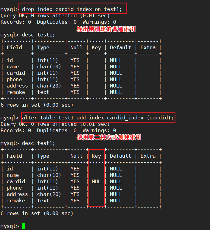 7.2、修改表方式删除索引