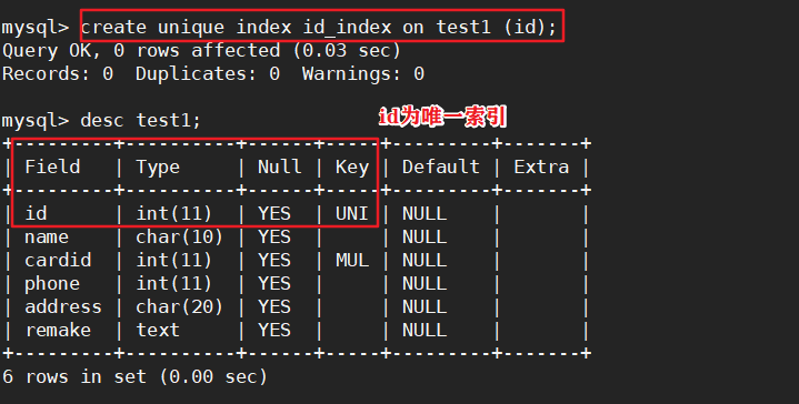 添加唯一键将自动创建唯一索引