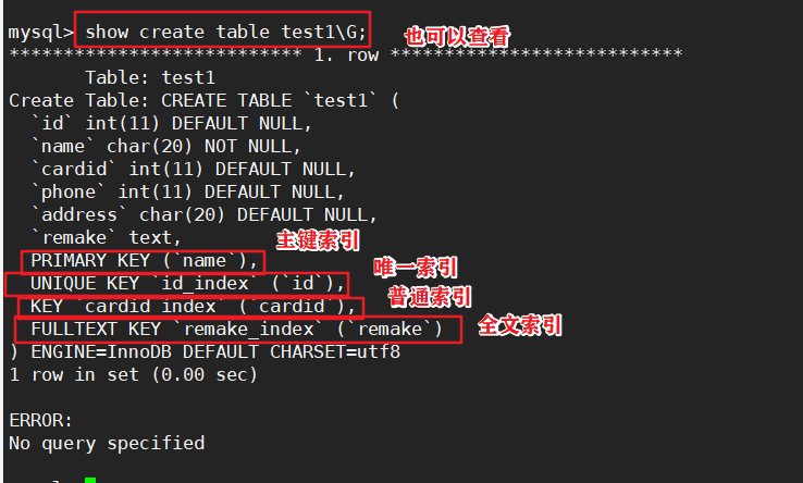 创建表的时候指定全文索引
