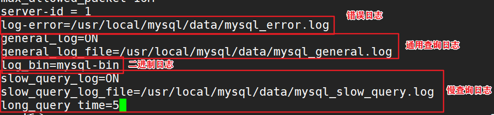 log-error=/usr/local/mysql/data/mysql_error.log #指定日志的保存位置和文件名