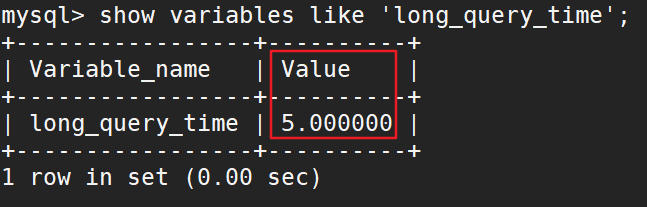 show variables like 'long_query_time'; #查看慢查询时间设置