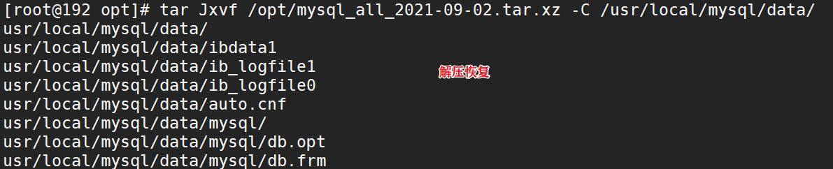 tar Jxvf /opt/mysql_all_2021_09_02.tar.xz -C /usr/local/mysql/data