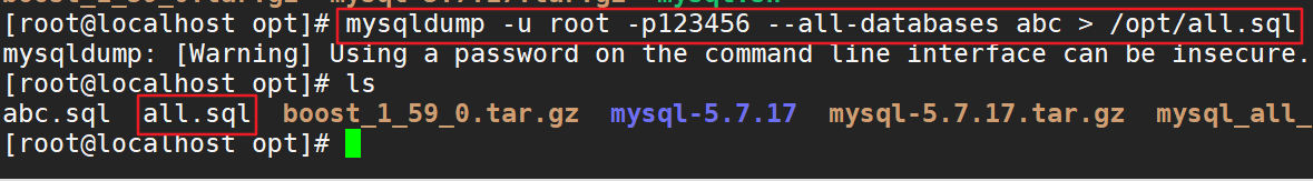 mysqldump -uroot -p[密码] --all-databases > /备份路径/备份文件名.sql