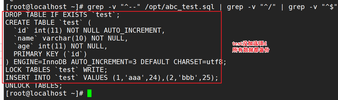 grep -v "^--" /opt/gxd-gxd03.sql | grep -v "^/" | grep -v "^$"