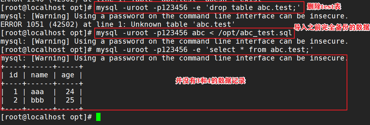 mysqlbinlog --no-defaults /opt/mysql-bin.00000x | mysql -uroot -p[密码]