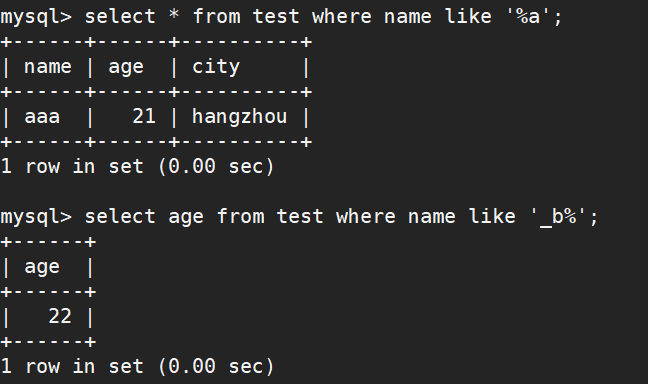 'A_Z':所有以'A'起头,另一个任何值的字符,且以“Z”为结尾的字符串。例如'ABZ'和'A2Z'都符合这一个模式,而'AKKZ'并不符合(因为在A和Z之间有两个字符,而不是一个字符)