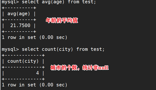 #count(列名)只包扩列名那一列的行数,在统计结果的时候,会忽略列值为null的行
