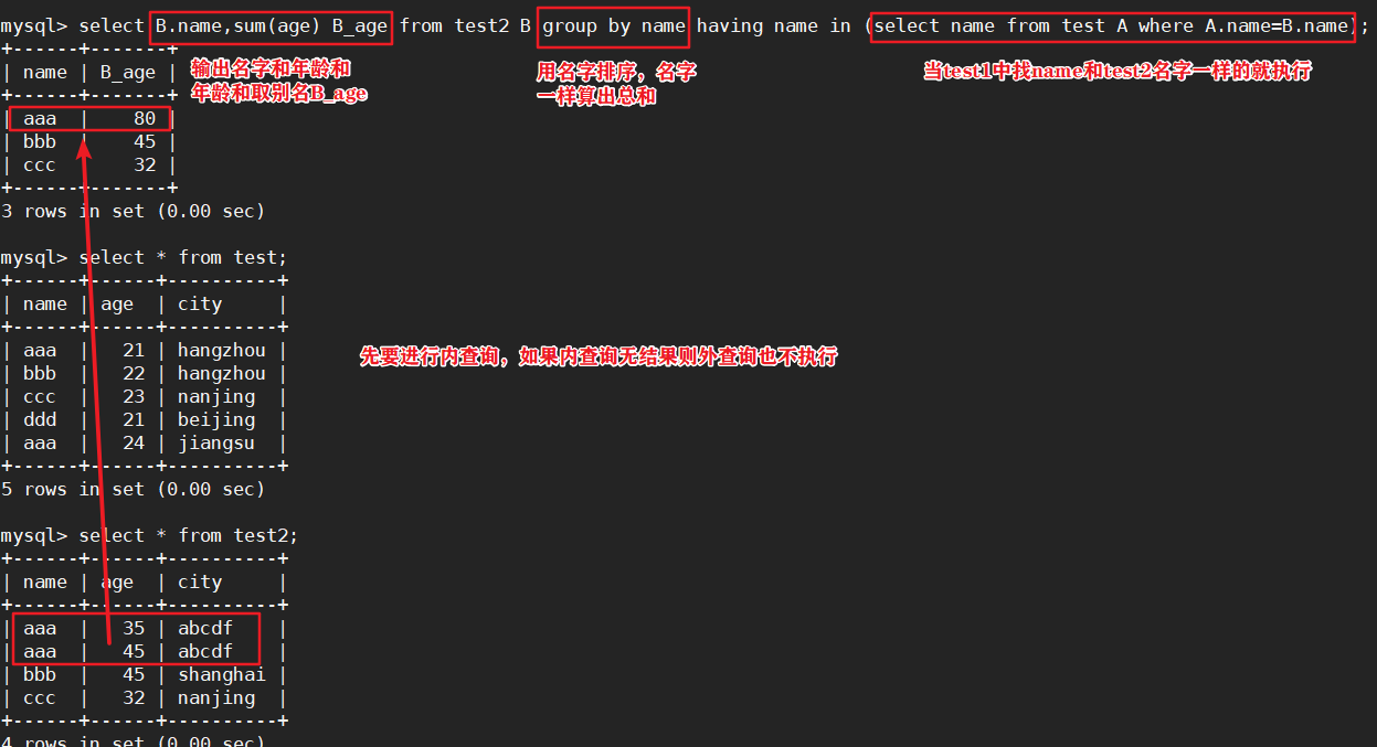 - 十四、子查询——连接表格,在where子句中或having子句中插入另一个sql语句
