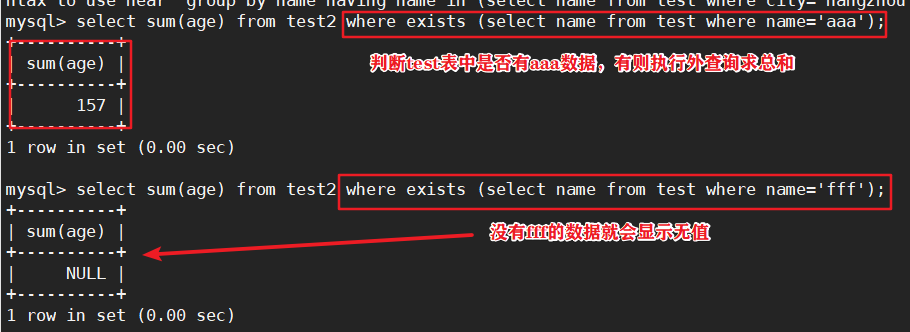 14.1、exist——用来测试内查询有没有产生任何结果,类似布尔值是否为真