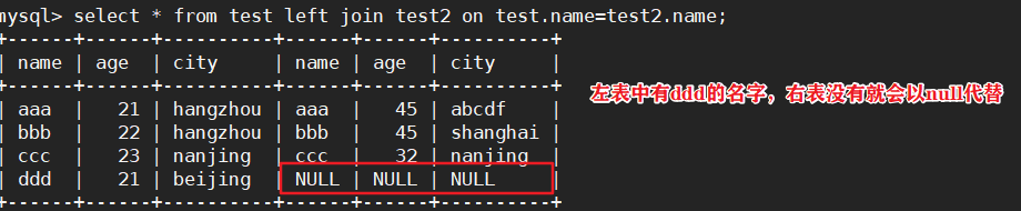 #返回包括左表中的所有记录和右表中联结字段相等的记录