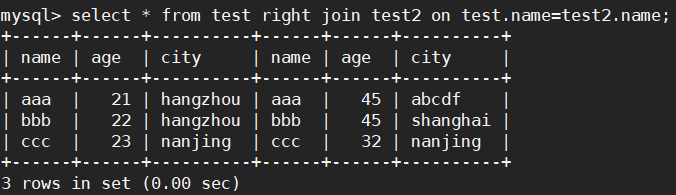 #返回包括右表中的所有记录和左表中联结字段相等的记录