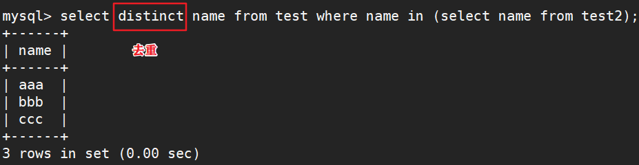 select distinct 相同字段 from 表名1 where 相同字段 in (select 相同字段 from 表名2);