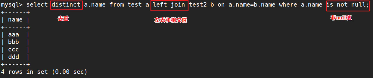 select distinct 别名1.相同字段 from 表格1 别名1 left join 表格2 别名2 on 表格1.相同字段=表格2.相同字段 where 别名1.相同字段 is not null;