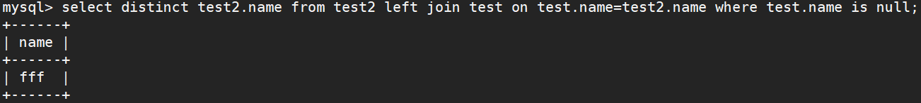 select distinct 别名1.相同字段 from 表格1 别名1 left join 表格2 别名2 on 表格1.相同字段=表格2.相同字段 where 别名1.相同字段 is null;